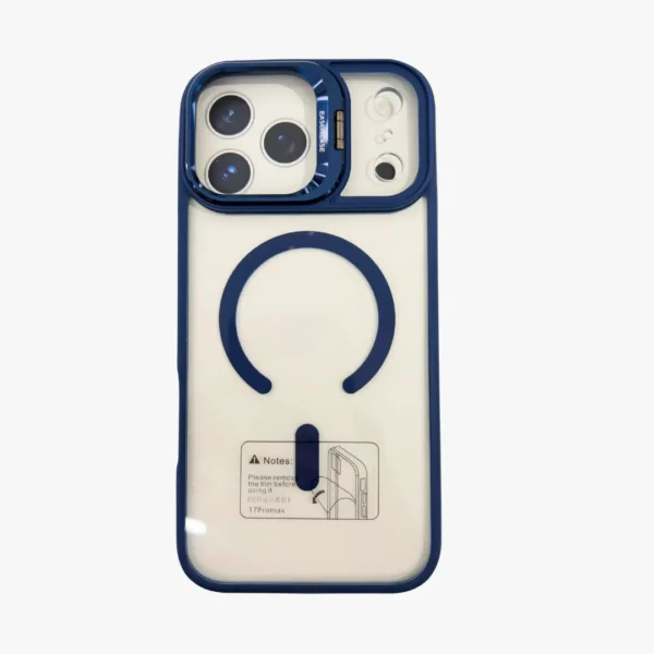 Estuche AntiGolpes Transparente Con Soporte Para iPhone 17 Pro Max Azul