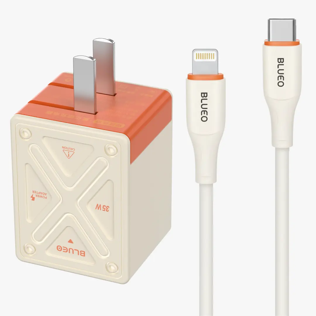 ¡Carga rápida y segura con el cargador 35W Gallium Nitride Blueo ! Compacto y potente, ideal para tus dispositivos móviles y portátiles. Tipo C y Tipo Lightning