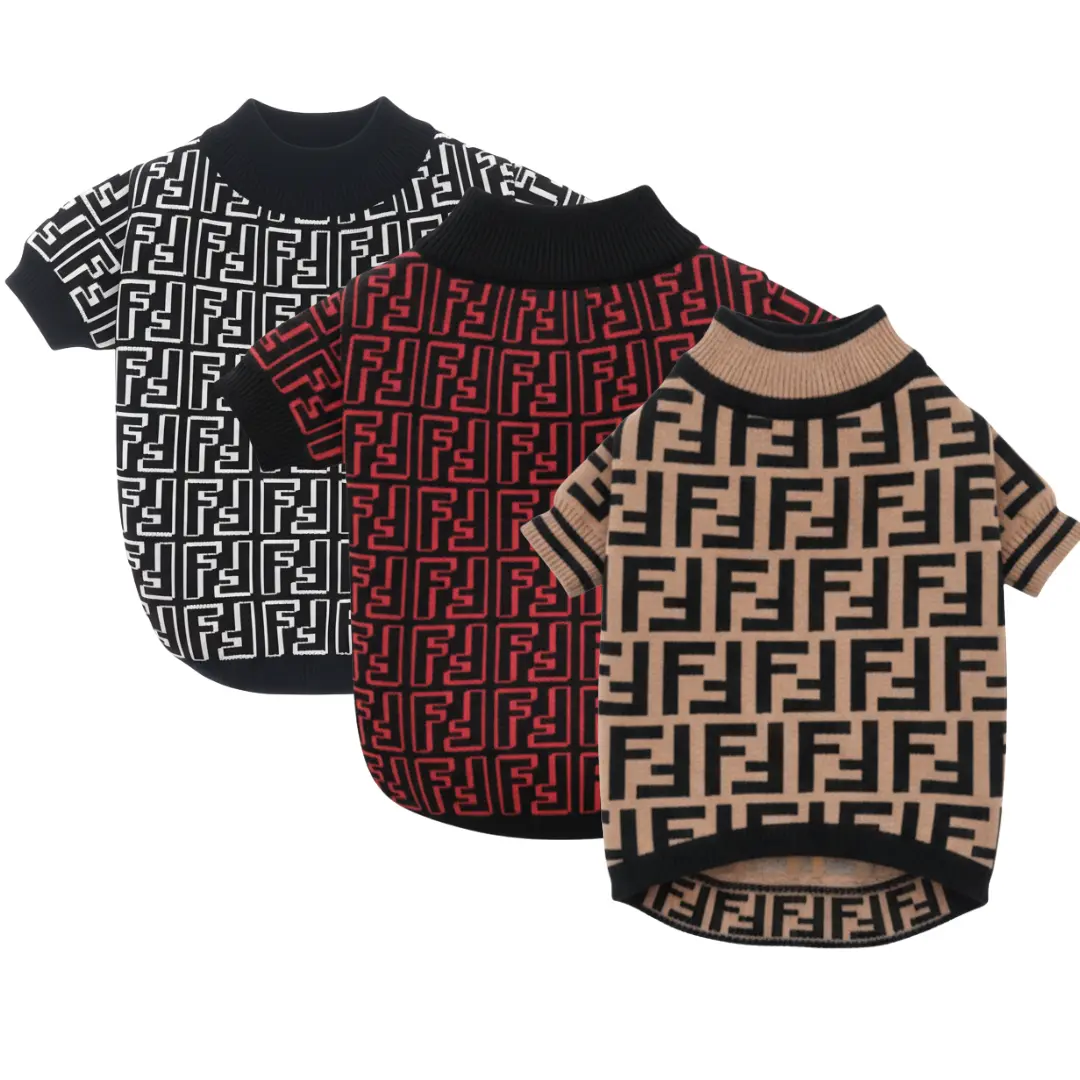 COMBO de 3 Piezas de camisa para mascota Ropa para perro Fendi – (rojo – blanco – Marron)