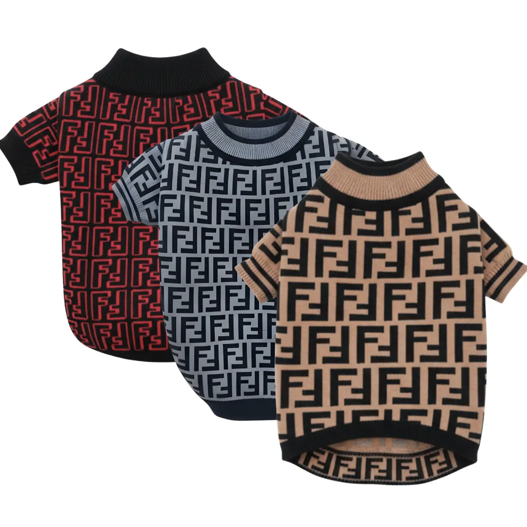 COMBO de 3 Piezas de camisa para mascota Ropa para perro Fendi – (rojo, gris, marron)