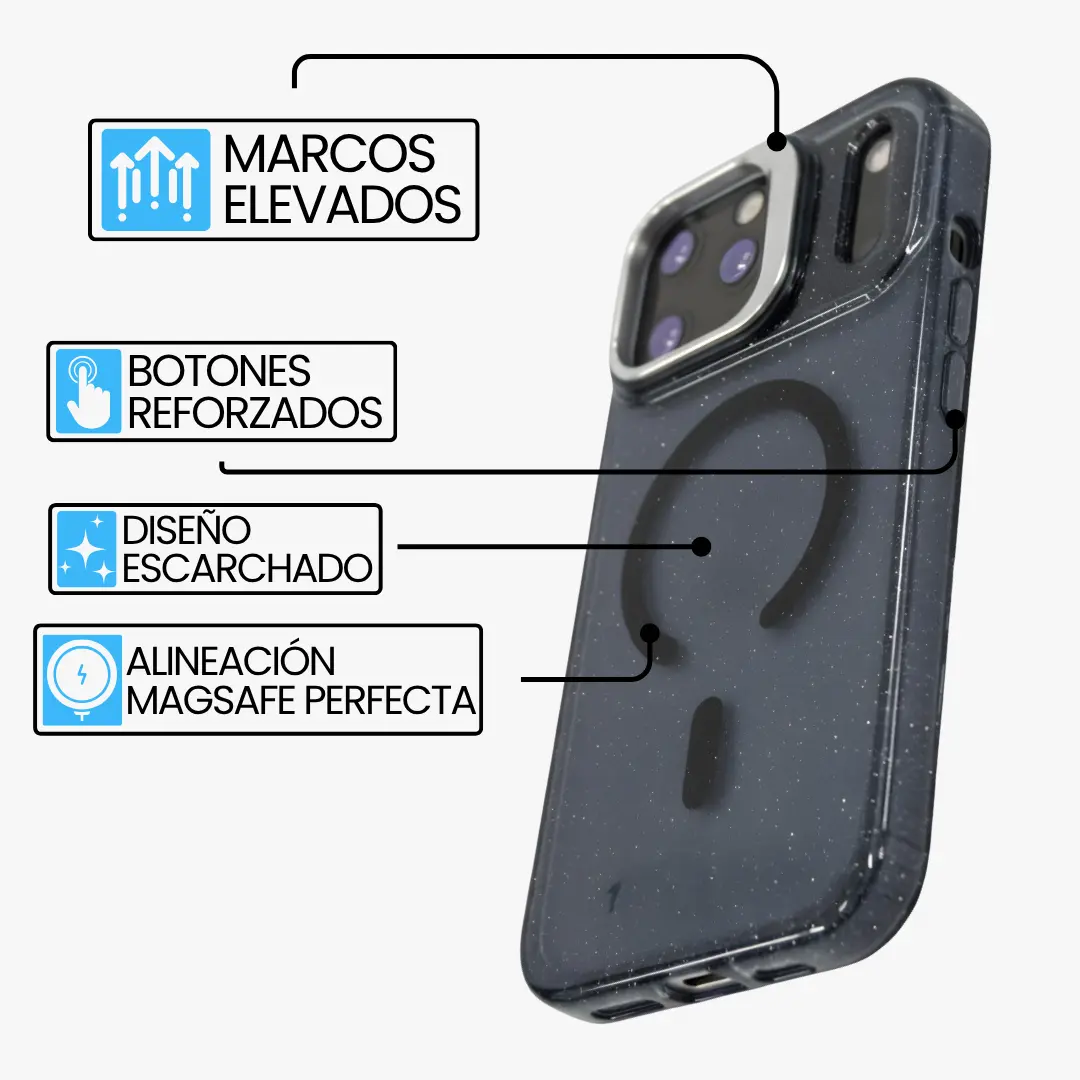 El ajuste perfecto garantiza acceso total a botones y puertos, y es compatible con carga inalámbrica y MagSafe para una experiencia sin interrupciones. La escarcha está sellada para evitar desgaste, manteniendo el brillo intacto y realzando el color original del iPhone con un efecto único que atrapa todas las miradas.
