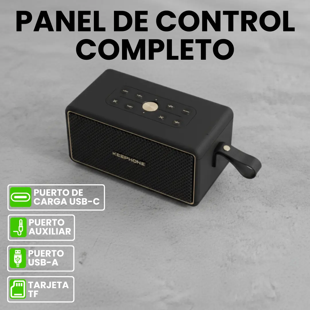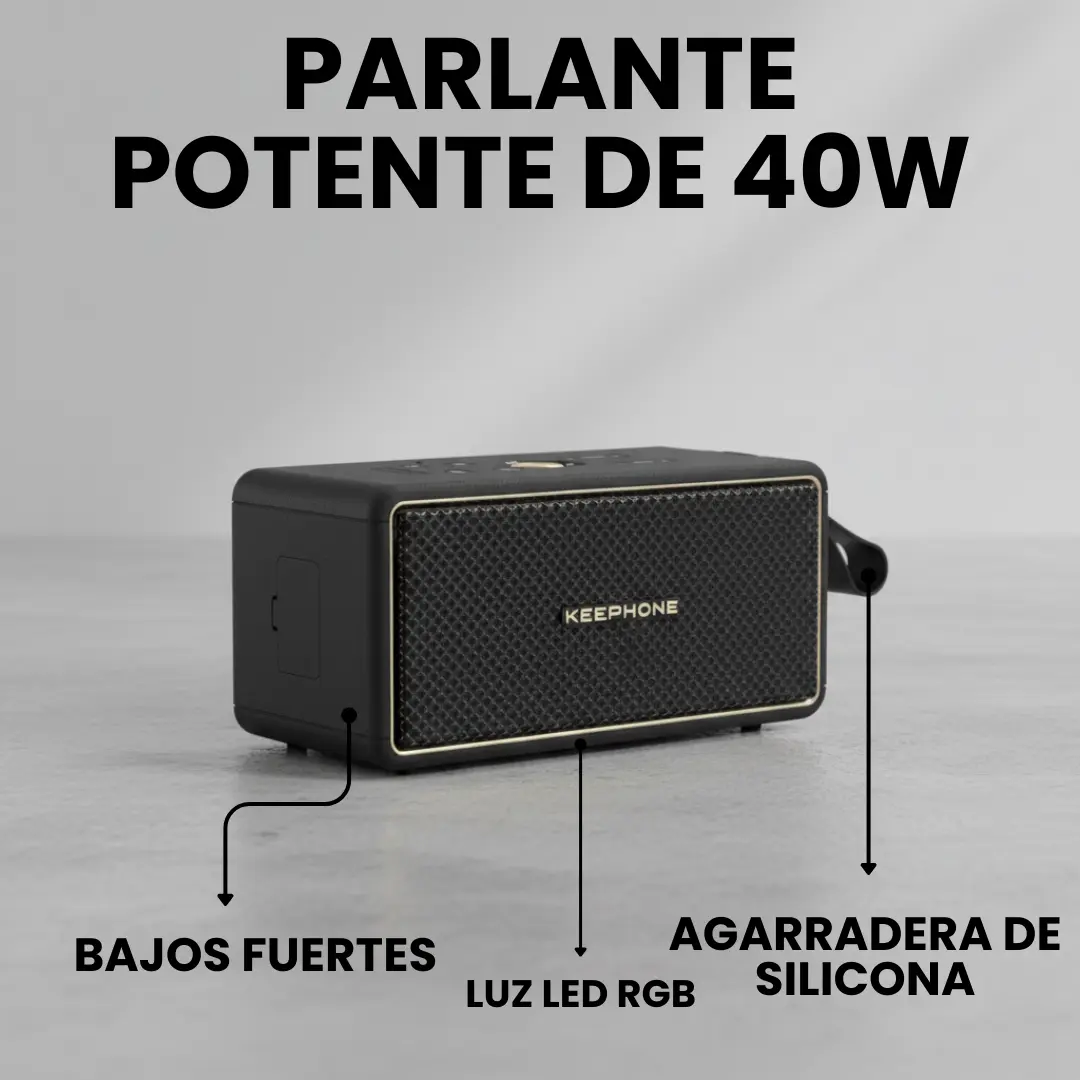 Parlante Bluetooth Keephone MusicPod Mini de 20W con sonido potente, bajos profundos, Bluetooth 5.3, luces RGB y batería recargable. Ideal para llevar a cualquier lugar.