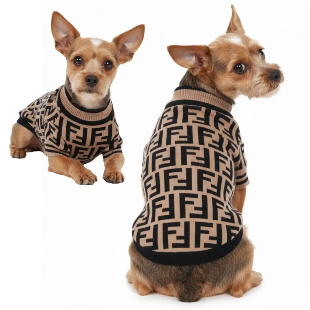Camisa para perro estilo Fendi, moderna y cómoda. Tela estirable, ideal para perros y gatos pequeños y medianos. Diseño elegante para uso diario y paseos
